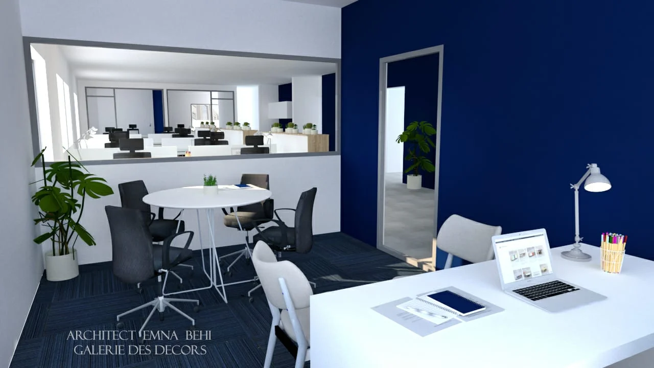 - Design et aménagement intérieur : cuisine équipée, espaces de travail, salles de réunion