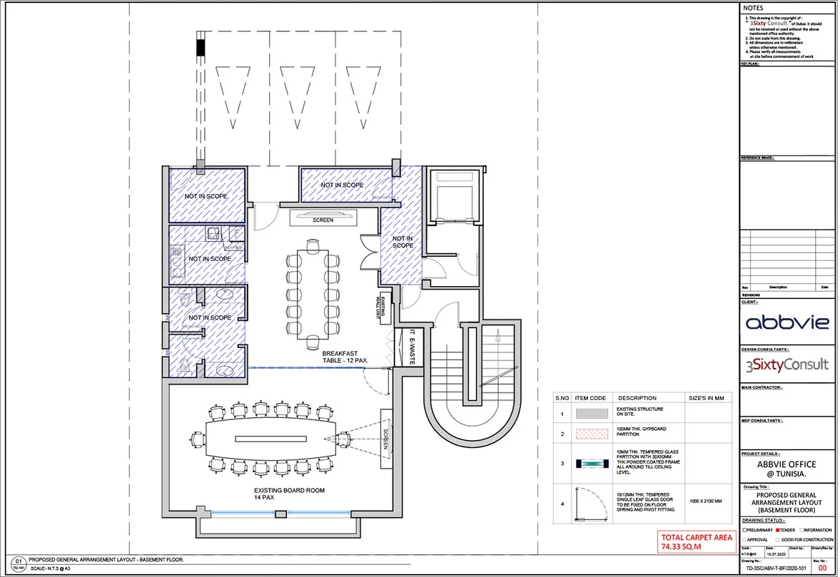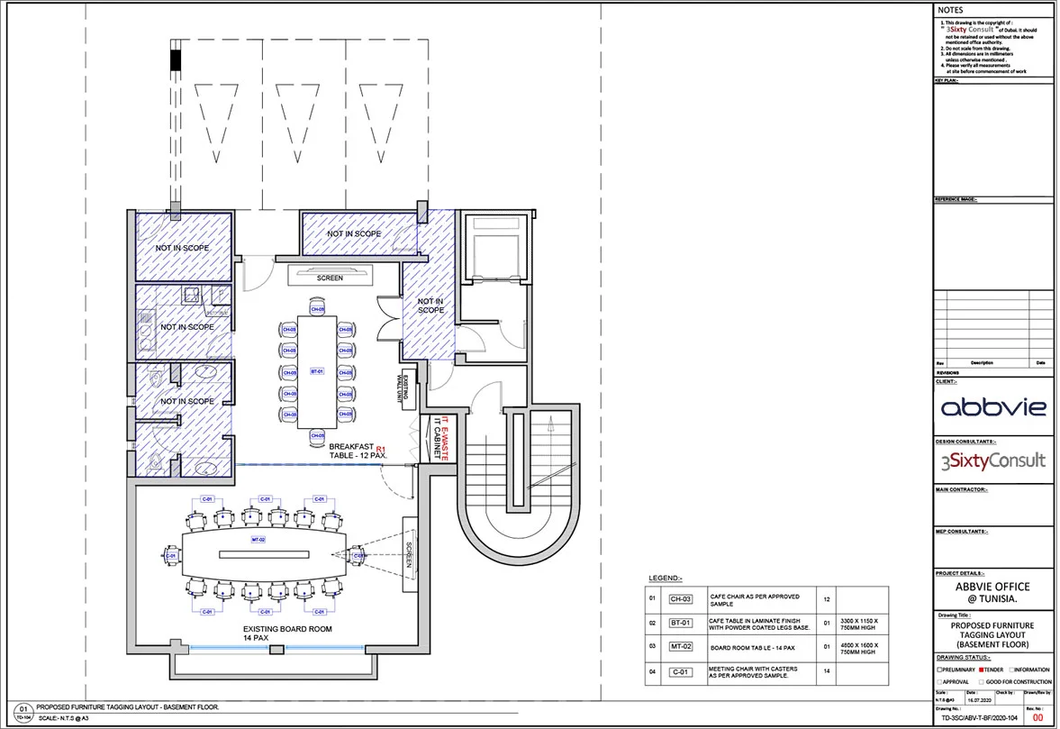 En 2020, Galerie des Décors a livré pour ABBVIE, entreprise pharmaceutique internationale cotée en bourse, un projet clé en main de 350 m² de surface utile. Réalisé dans les délais impartis et en respectant strictement le budget, ce projet illustre notre savoir-faire dans la création d’espaces professionnels modernes et fonctionnels.