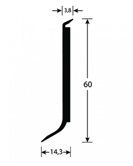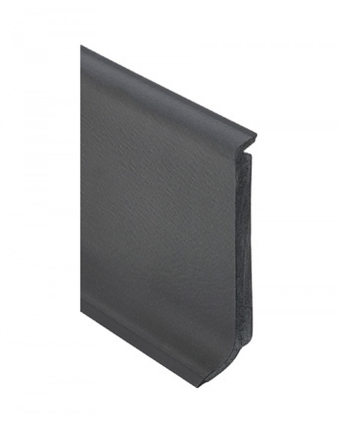 A rigid PVC aluminum finishing profile with a flexible lip that covers the top of the skirting board. Resistant to heavy traffic and humidity , suitable for 2.5 to 3 mm floors.