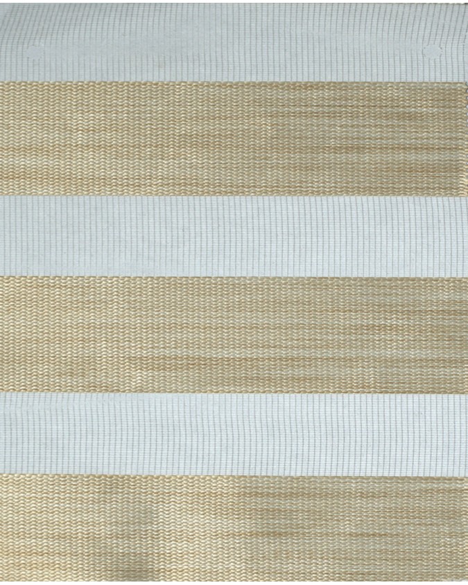 The made to measure zebra blind is made up of transparent horizontal strips and semi-opaque fabrics overlapping each other when operated.