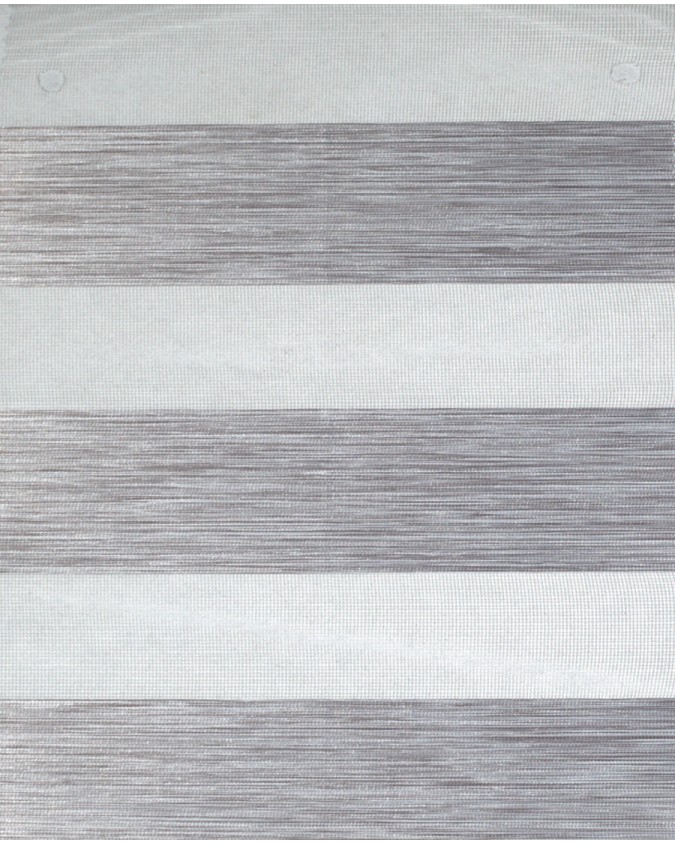 The made to measure zebra blind is made up of transparent horizontal strips and semi-opaque fabrics overlapping each other when operated.