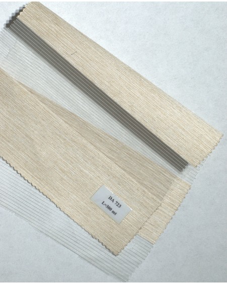 The made to measure zebra blind is made up of transparent horizontal strips and semi-opaque fabrics overlapping each other when operated.