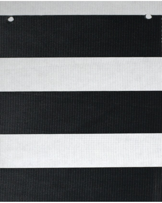 The made to measure zebra blind is made up of transparent horizontal strips and semi-opaque fabrics overlapping each other when operated.