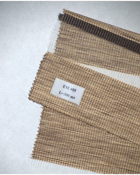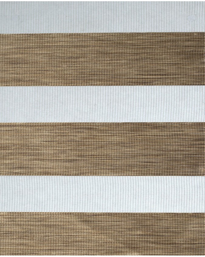 The made to measure zebra blind is made up of transparent horizontal strips and semi-opaque fabrics overlapping each other when operated.
