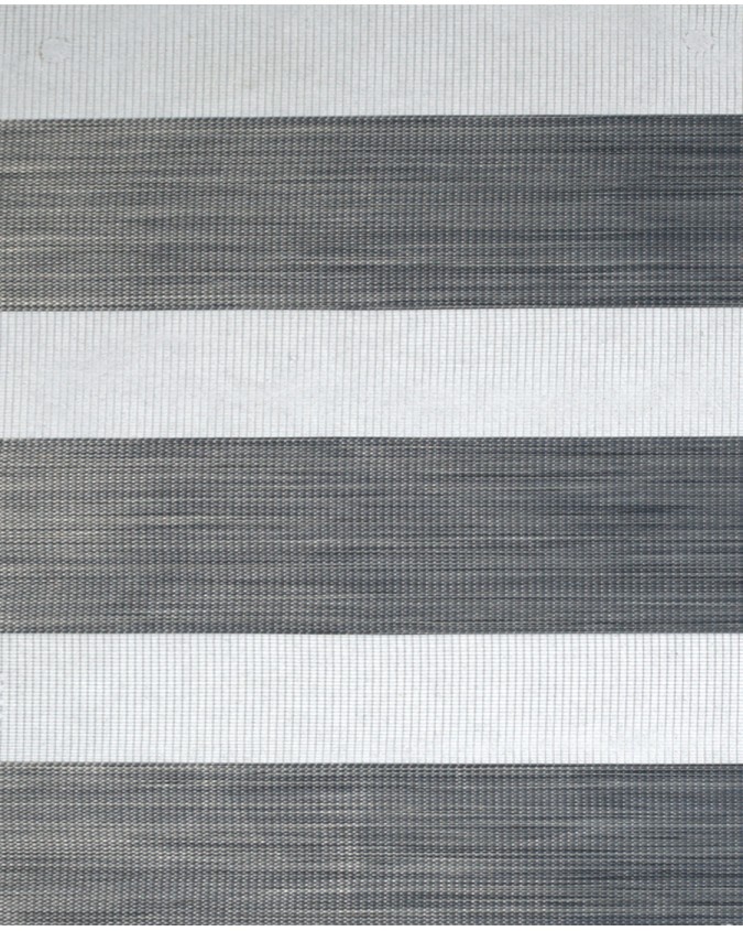The made to measure zebra blind is made up of transparent horizontal strips and semi-opaque fabrics overlapping each other when operated.