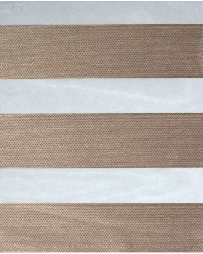 The made to measure zebra blind is made up of transparent horizontal strips and semi-opaque fabrics overlapping each other when operated.