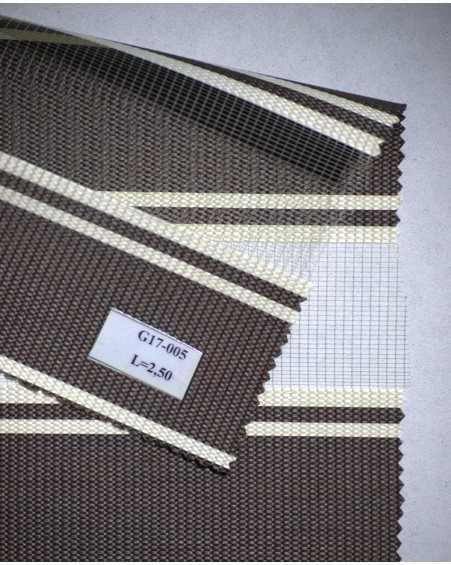 The made to measure zebra blind is made up of transparent horizontal strips and semi-opaque fabrics overlapping each other when operated.