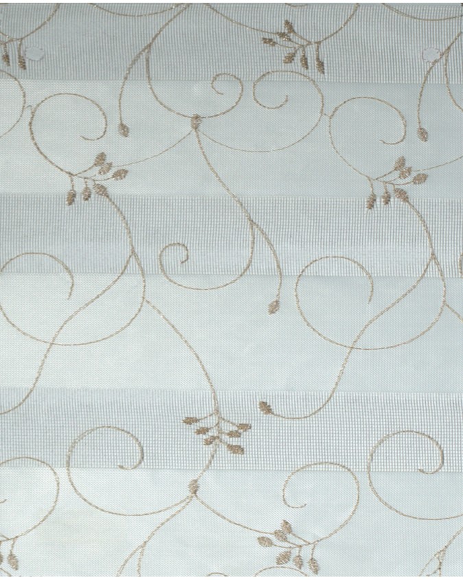 The made to measure zebra blind is made up of transparent horizontal strips and semi-opaque fabrics overlapping each other when operated.