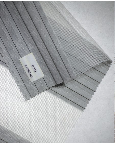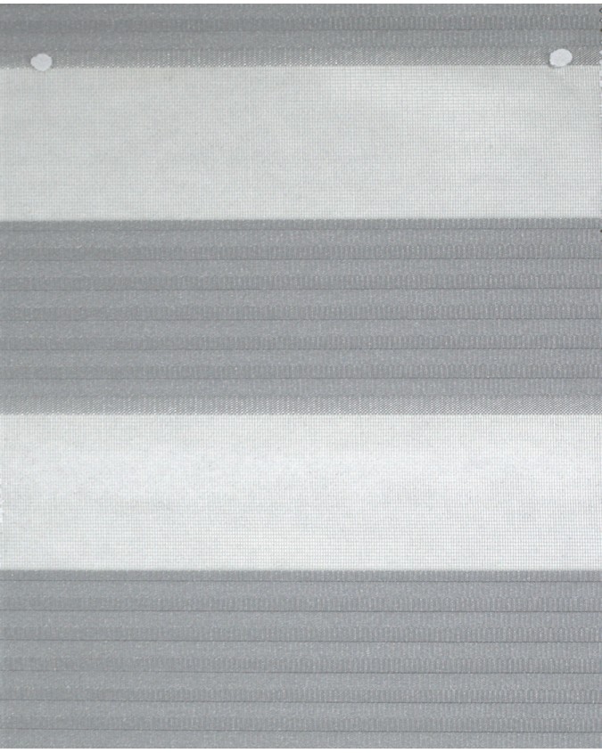 The made to measure zebra blind is made up of transparent horizontal strips and semi-opaque fabrics overlapping each other when operated.