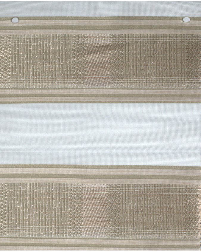 The made to measure zebra blind is made up of transparent horizontal strips and semi-opaque fabrics overlapping each other when operated.