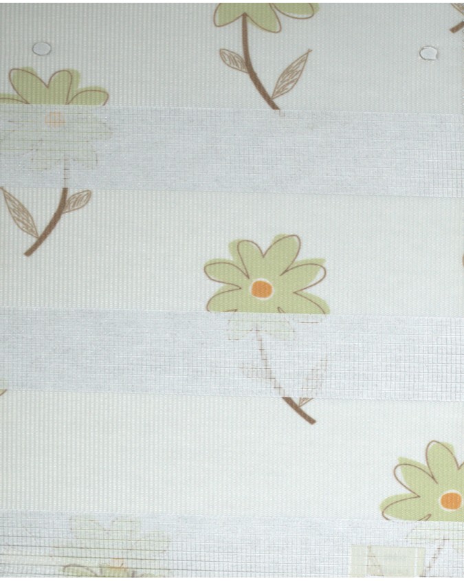 The made to measure zebra blind is made up of transparent horizontal strips and semi-opaque fabrics overlapping each other when operated.