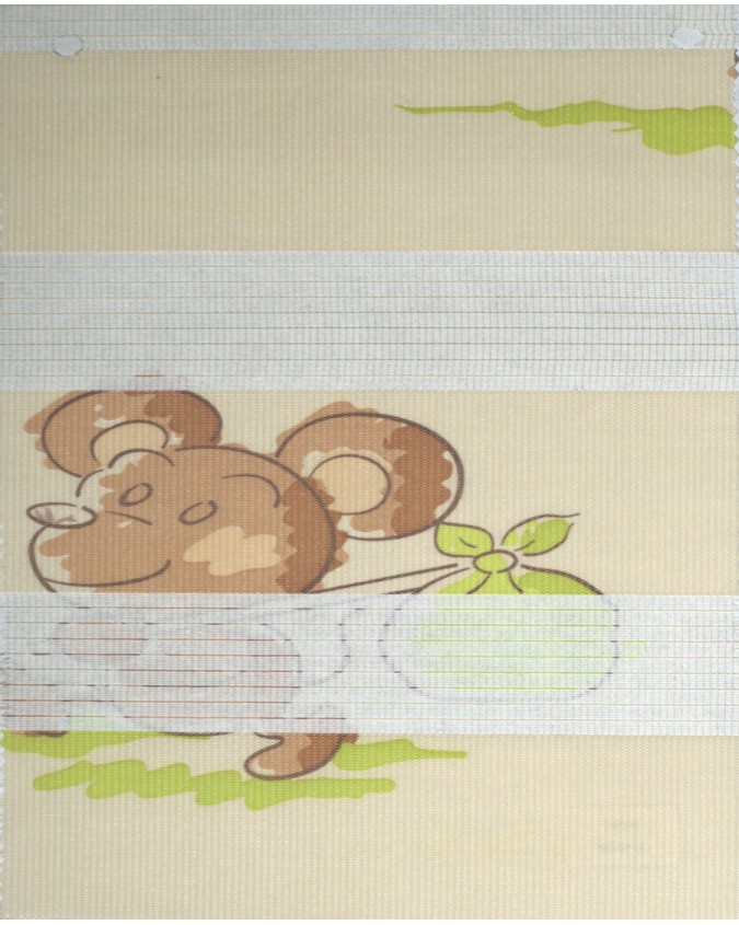 The made to measure zebra blind is made up of transparent horizontal strips and semi-opaque fabrics overlapping each other when operated.