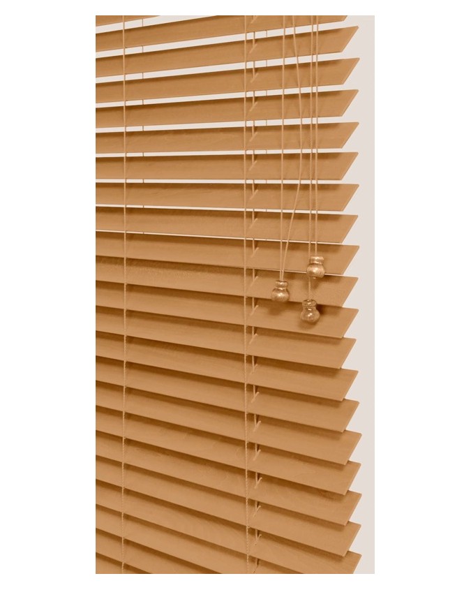 Le rideau vénitien / horizontal sur-mesure composé de lamelles horizontales en bois.