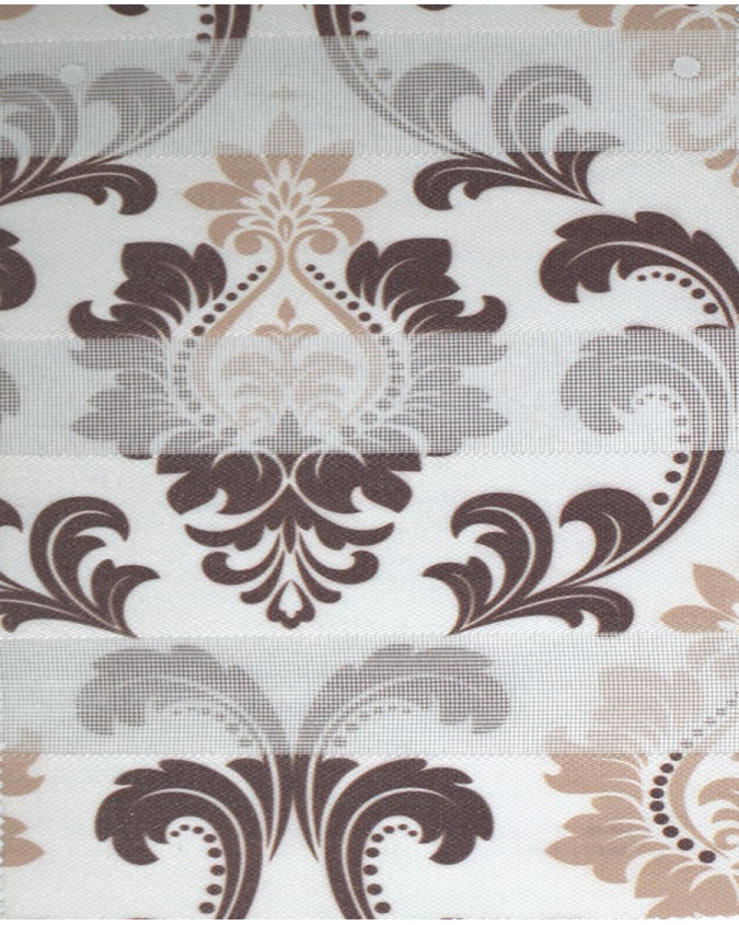 Le rideau enrouleur double jeu / Zebra sur-mesure composés de bandes horizontales intercalant un tissu transparent et un tissu semi-opaque qui se superposent lorsqu’ils sont actionnés.