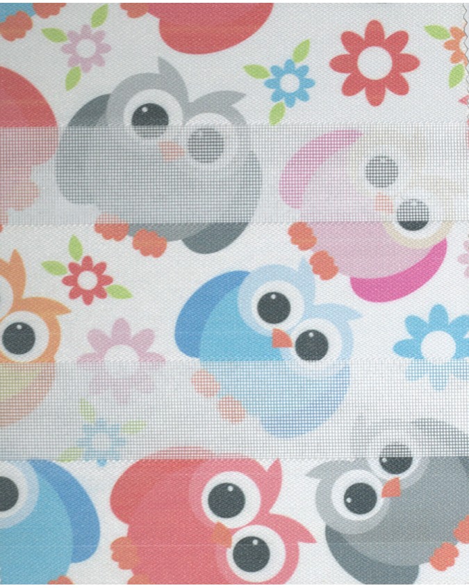 Le rideau enrouleur double jeu / Zebra sur-mesure composés de bandes horizontales intercalant un tissu transparent et un tissu semi-opaque qui se superposent lorsqu’ils sont actionnés.