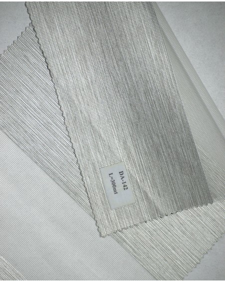 Le rideau enrouleur double jeu / Zebra sur-mesure composés de bandes horizontales intercalant un tissu transparent et un tissu semi-opaque qui se superposent lorsqu’ils sont actionnés.