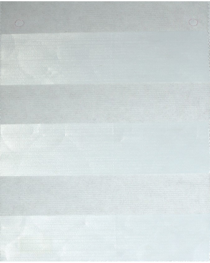 Le rideau enrouleur double jeu / Zebra sur-mesure composés de bandes horizontales intercalant un tissu transparent et un tissu semi-opaque qui se superposent lorsqu’ils sont actionnés.