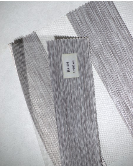 Le rideau enrouleur double jeu / Zebra sur-mesure composés de bandes horizontales intercalant un tissu transparent et un tissu semi-opaque qui se superposent lorsqu’ils sont actionnés.