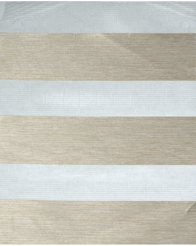 Le rideau enrouleur double jeu / Zebra sur-mesure composés de bandes horizontales intercalant un tissu transparent et un tissu semi-opaque qui se superposent lorsqu’ils sont actionnés.