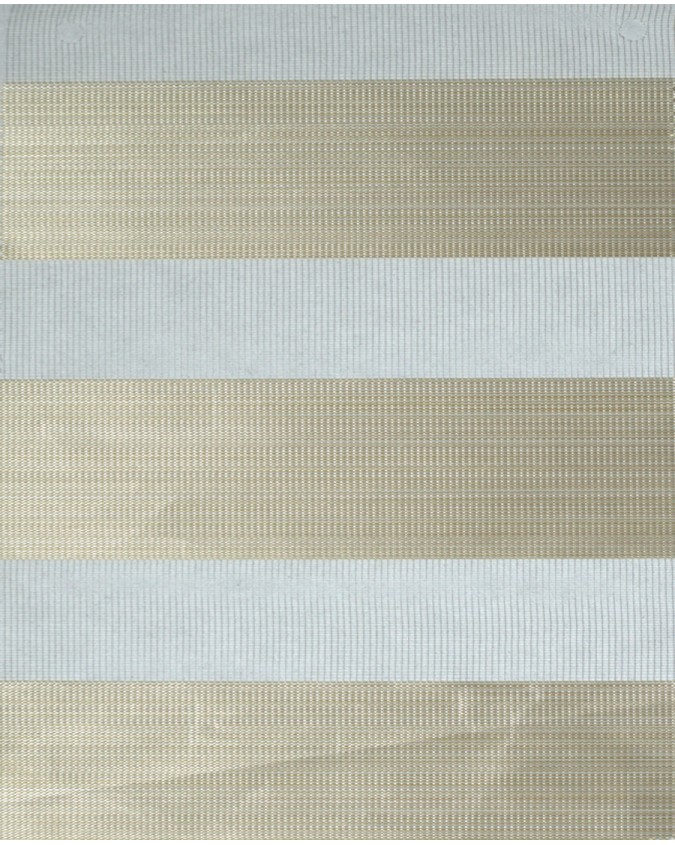 Le rideau enrouleur double jeu / Zebra sur-mesure composés de bandes horizontales intercalant un tissu transparent et un tissu semi-opaque qui se superposent lorsqu’ils sont actionnés.