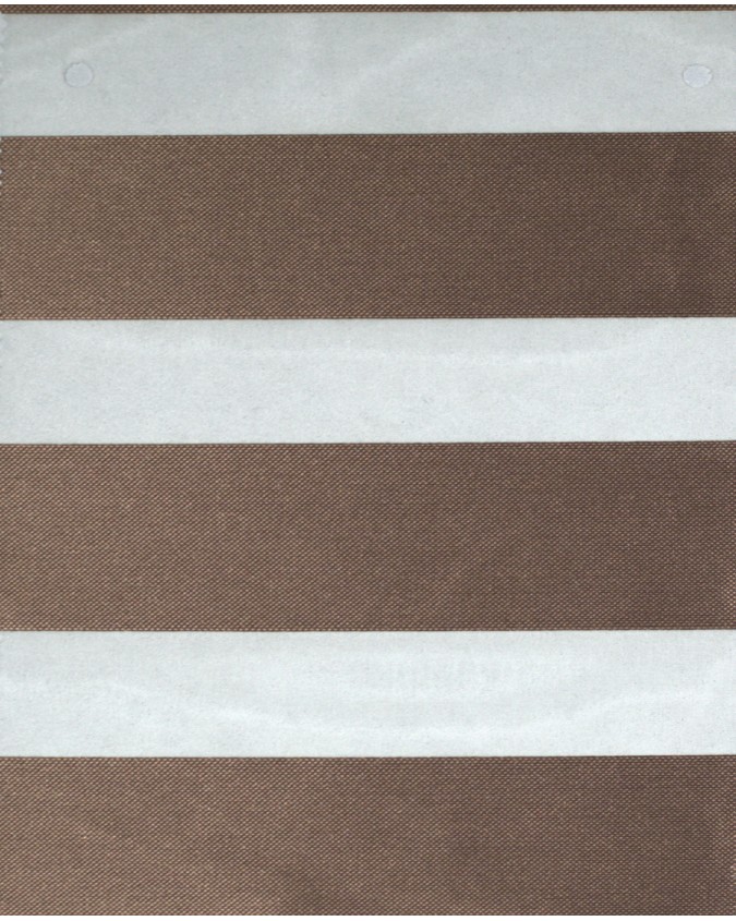 Le rideau enrouleur double jeu / Zebra sur-mesure composés de bandes horizontales intercalant un tissu transparent et un tissu semi-opaque qui se superposent lorsqu’ils sont actionnés.