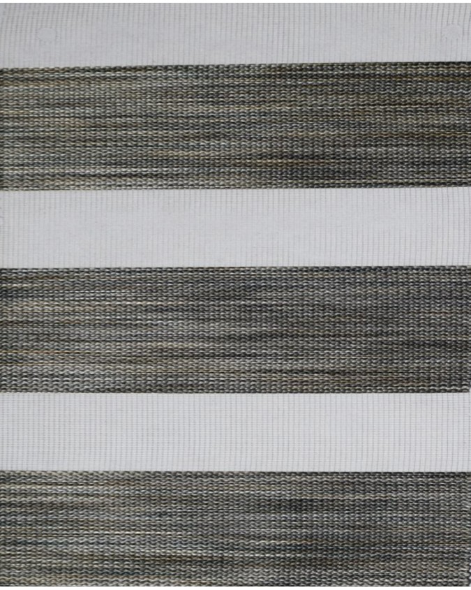 Le rideau enrouleur double jeu / Zebra sur-mesure composés de bandes horizontales intercalant un tissu transparent et un tissu semi-opaque qui se superposent lorsqu’ils sont actionnés.