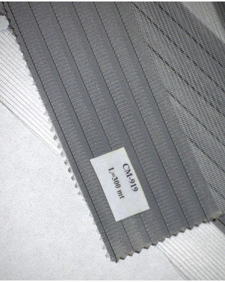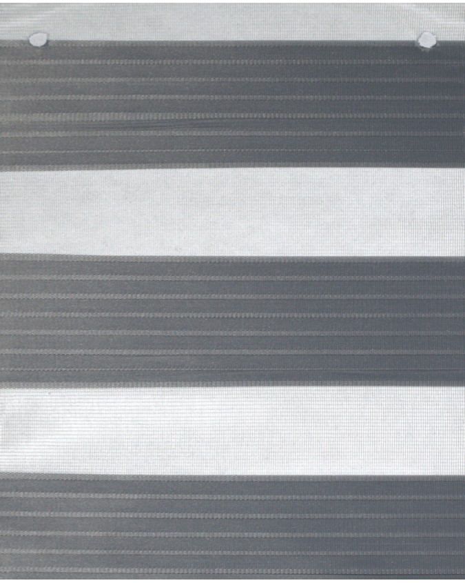 Le rideau enrouleur double jeu / Zebra sur-mesure composés de bandes horizontales intercalant un tissu transparent et un tissu semi-opaque qui se superposent lorsqu’ils sont actionnés.