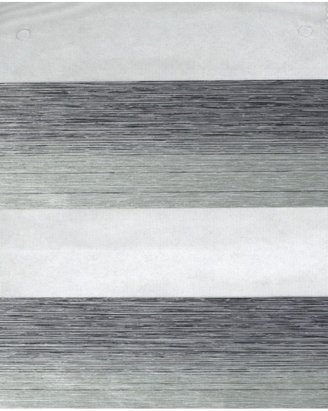 Le rideau enrouleur double jeu / Zebra sur-mesure composés de bandes horizontales intercalant un tissu transparent et un tissu semi-opaque qui se superposent lorsqu’ils sont actionnés.