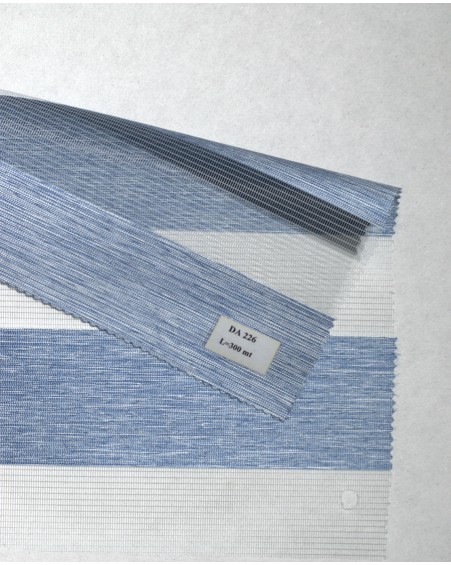 Le rideau enrouleur double jeu / Zebra sur-mesure composés de bandes horizontales intercalant un tissu transparent et un tissu semi-opaque qui se superposent lorsqu’ils sont actionnés.
