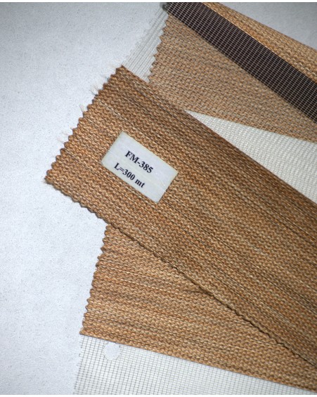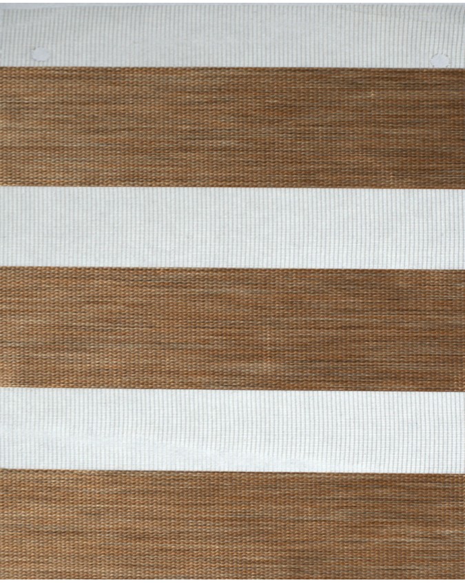 Le rideau enrouleur double jeu / Zebra sur-mesure composés de bandes horizontales intercalant un tissu transparent et un tissu semi-opaque qui se superposent lorsqu’ils sont actionnés.