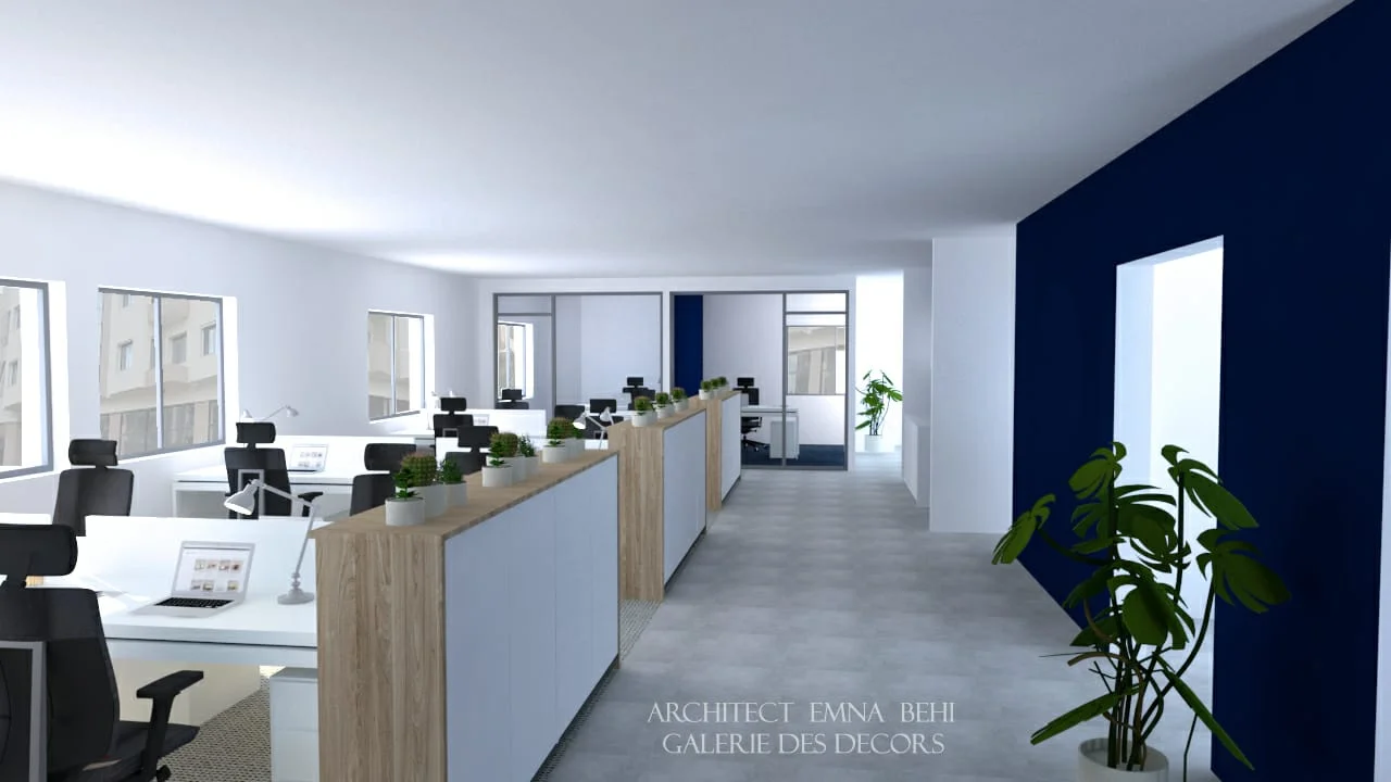- Design et aménagement intérieur : cuisine équipée, espaces de travail, salles de réunion
